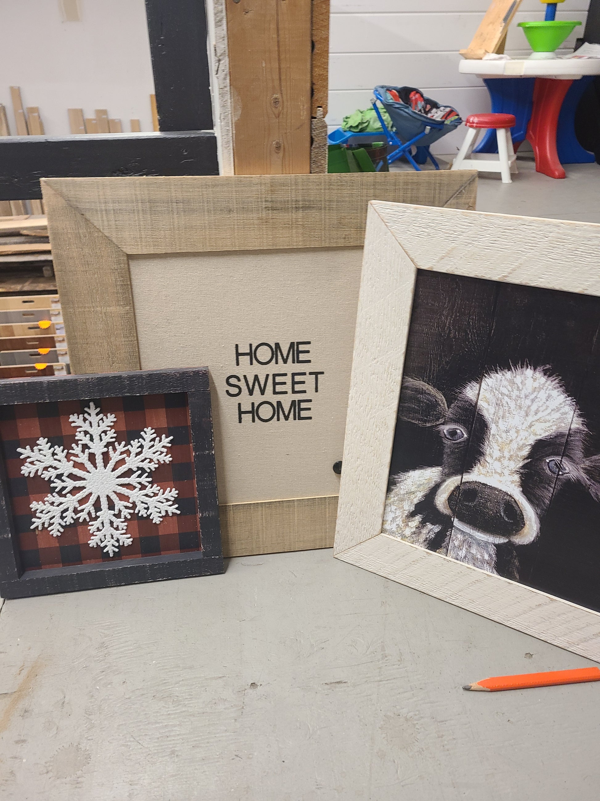 We can custom-craft home decor pieces to enhance your space. Personalized trays, Christmas stocking hangers, range hoods, picture frames, wall hangings and more. Get unique items for special gifts or to decorate your home or cottage.